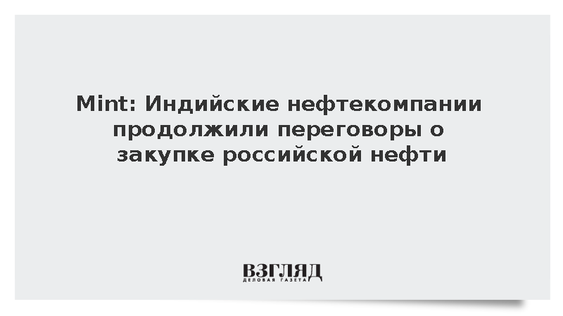 Индийские государственные нефтяные компании продолжают закупать российскую нефть и ведут переговоры о новых поставках, передает ТАСС со ссылкой на индийскую газету Mint. В числе компаний, задействованных в переговорах, названы Indian Oil Corp, Bharat Petroleum Corp Ltd и Hindustan Petroleum Corp Ltd.