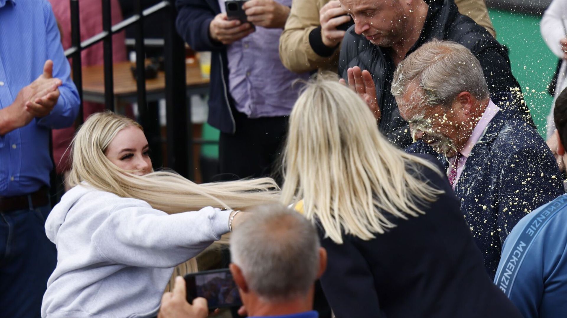 Mr Farage, 60, was covered with a drink as he left the Moon and Starfish Wetherspoons pub in Clacton-on-Sea on 4 June.