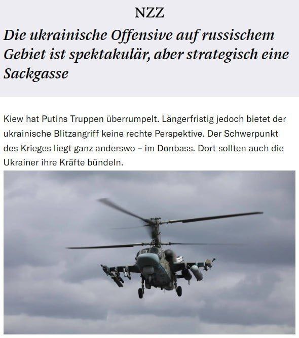 "Курская область не имеет для украинцев стратегического значения. О создании там плацдарма в долгосрочной перспективе речи также не идет. Фотографии американских "Брэдли" и немецких БМП "Мардер"... не вызывают аплодисментов в Вашингтоне и Берлине", — признал Рюш в статье для Neue Zürcher Zeitung.