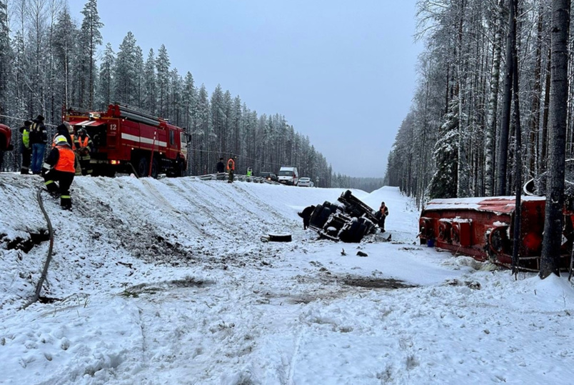 Предварительно установлено, что 5 ноября около 14:00 на 10 километре автодороги «Кочкома-Костомукша» в Сегежском районе перевернулся бензовоз. В результате ДТП водитель тягача погиб. Кроме того, произошел частичный разлив топлива.