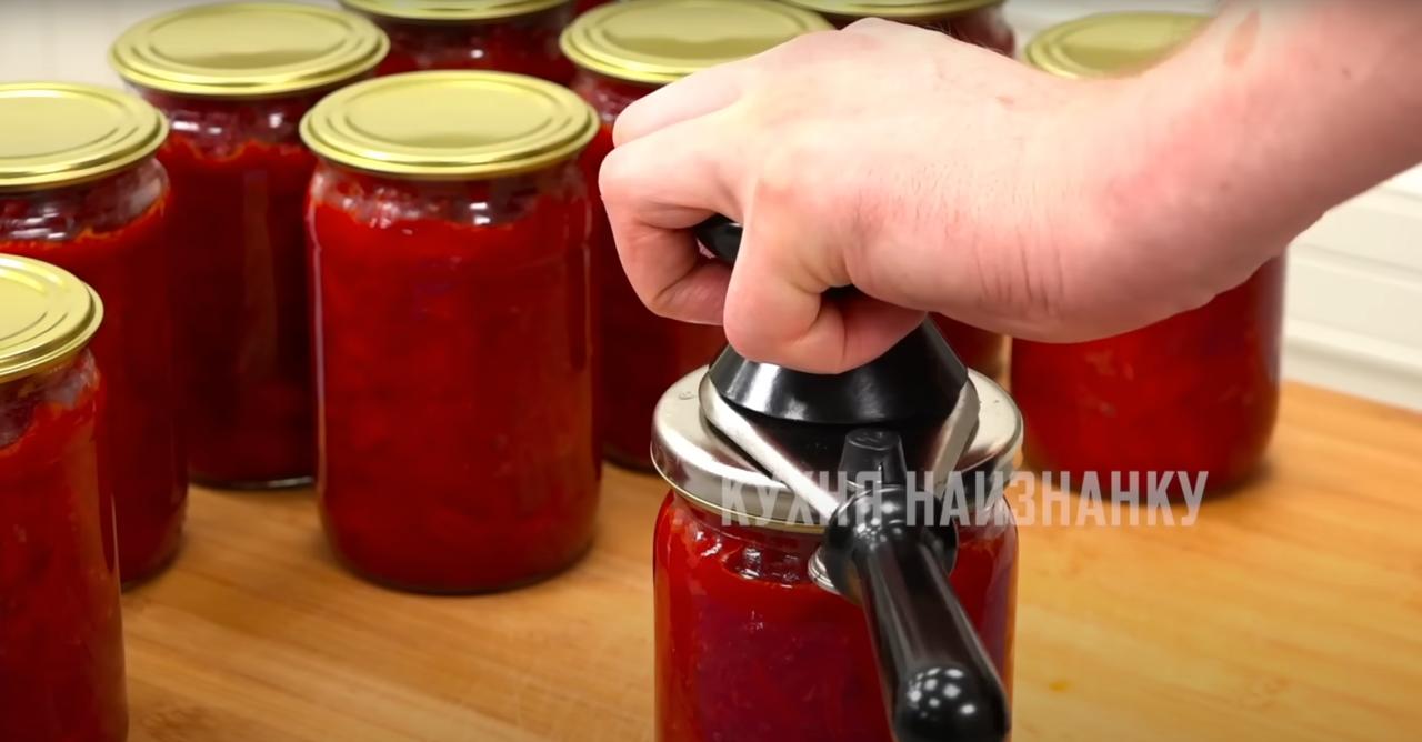 Лук всегда обжариваю, томатную пасту тоже прогреваю в горячем масле пару минут. Борщ получается вкуснее, нет привкуса сырого лука. НО тут можно упростить: все ингредиенты сразу выложить в кастрюлю, тушить 45 минут, затем закатать. Но я всё же советую не экономить на вкусе — сделайте по рецепту, не пожалеете!