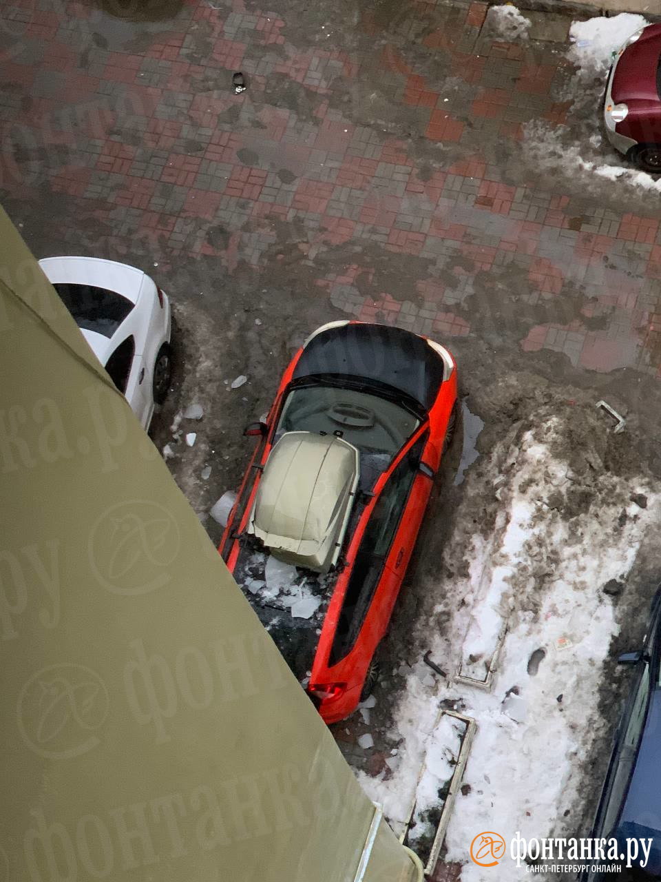 Это не первый пострадавший автомобиль у этого дома — «Фонтанка» писала про еще одного невезучего 17 декабря. Дом обслуживает УК «Мир». Там заявили, что всем владельцам поврежденных авто необходимо обращаться в юридический отдел управляющей компании.