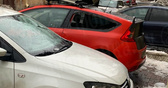 А кто увернуться не может, так это припаркованные автомобили. Например, вот что вместо своей машины увидела учительница музыки Светлана — вмятины и выбитые стекла.