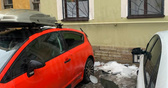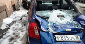 Сразу два автомобиля повредила наледь, которая упала с крыши дома № 22 на улице Воскова.