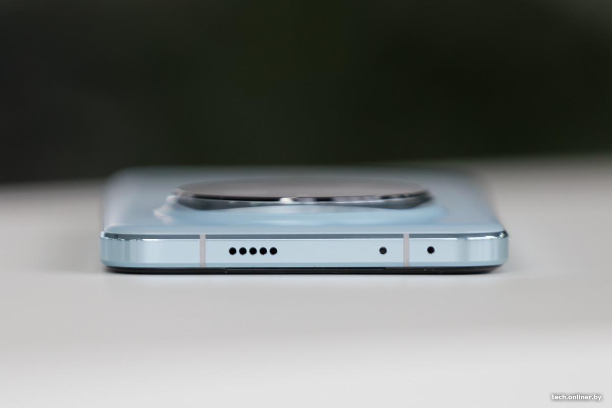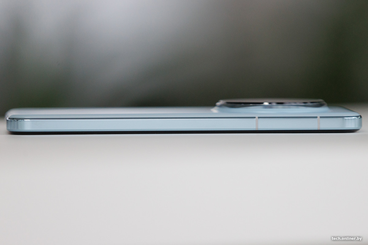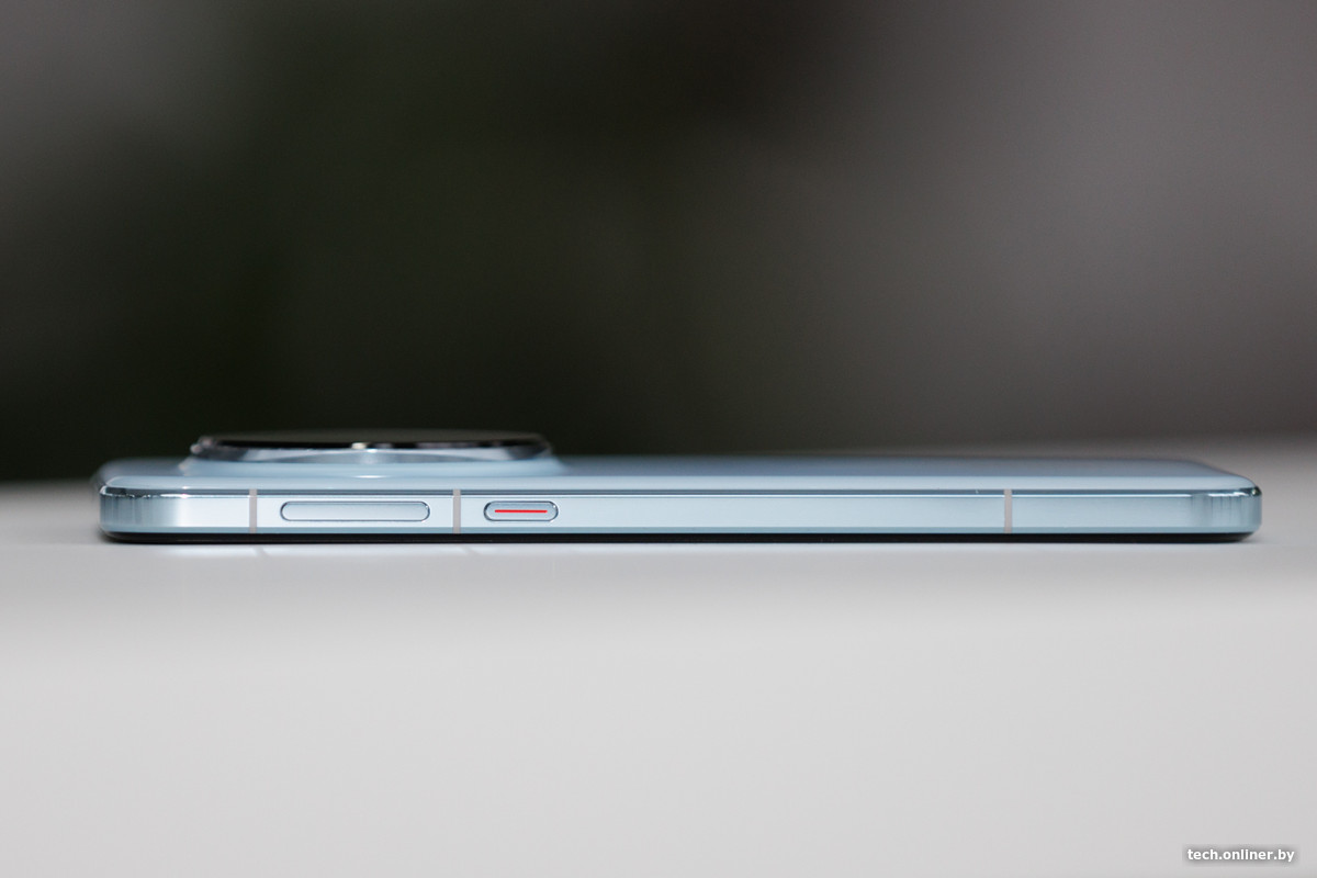 Выпустили Magic7 Pro в трех цветах: мраморном, черном и голубом. У нас на обзоре оказался последний вариант. Задняя панель у него матовая, защищена закаленным стеклом. Алюминиевые грани — плоские и глянцевые: они сразу же покрываются отпечатками пальцев, но тут на помощь может прийти комплектный чехол. Экран, минимально изогнутый со всех сторон, прикрыт стеклом NanoCrystal Shield и заводской пленкой.