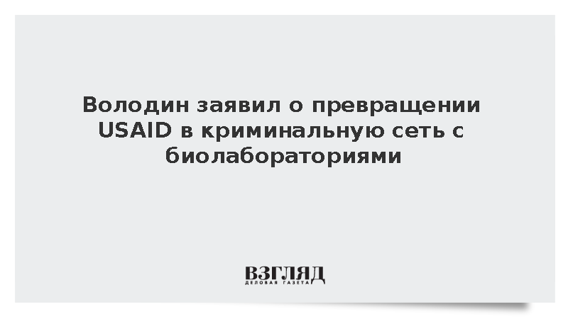 Спикер Госдумы Вячеслав Володин обвинил Агентство по международному развитию США (USAID) в создании сети биолабораторий и финансировании массовых беспорядков в более чем ста странах мира.