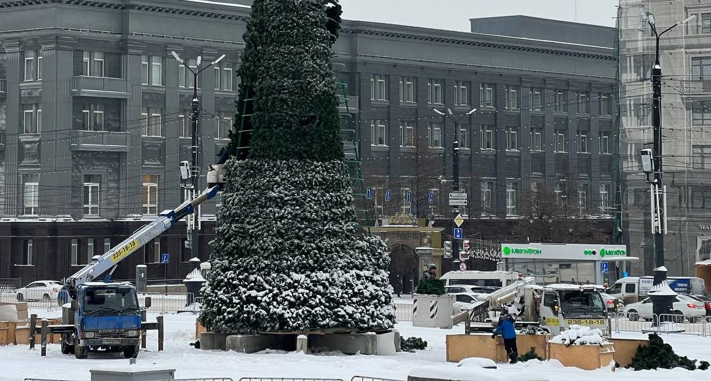 За установкой ёлочной конструкции в центре города понаблюдал корреспондент «Пчелы».