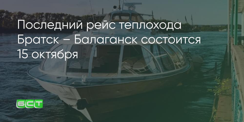 Со следующей среды у жителей Приангарья не будет возможности передвигаться по Братскому водохранилищу на рейсовом теплоходе. «Метеор» завершает навигацию: 14 октября он пойдёт из Балаганска в Братск, а 15 октября совершит финальный рейс в обратном направлении и встанет на зимовку до следующего лета.