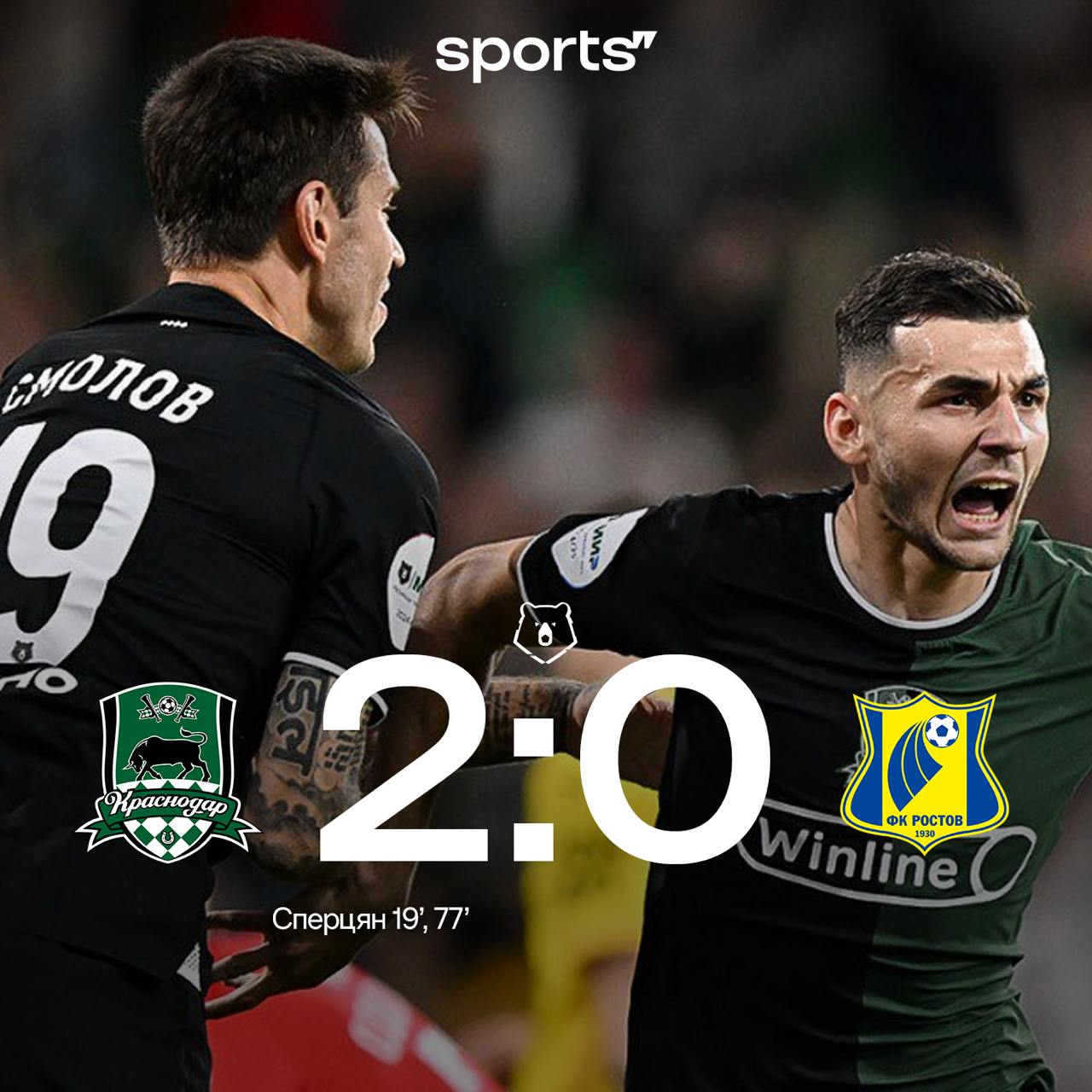 🐂🇷🇺 «Краснодар» обыграл «Ростов» благодаря дублю Сперцяна.
