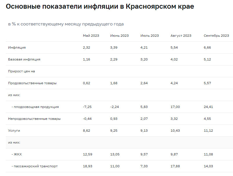 По данным Центробанка в Красноярском крае цены поднялись на 6,66% за год