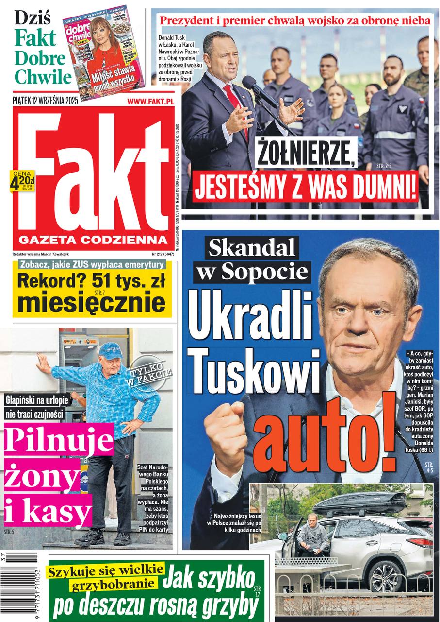 Ха! Очень показательно! Пока Дональд Туск благодарил своих бравых летчиков за сбитые пенопластовые дроны героизм в отражении российской атаки, неизвестные украли Лексус Туска в Сопоте!
