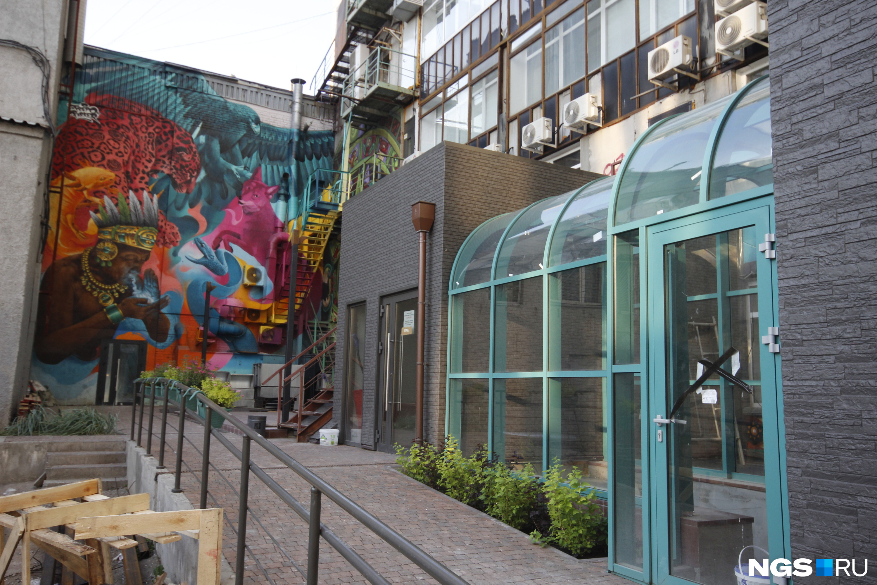 Бар во дворе бизнес-центра на Красном проспекте, 17 еще в прошлом году планировали открыть совладелец мексиканского ресторана New Mexico с партнерами. Для того чтобы сделать место ярким и узнаваемым, из Мексики даже был приглашен уличный художник Трепо, который нарисовал там огромный мурал (картина на стене) изображающий процесс мистического обретения духом разных форм животных.