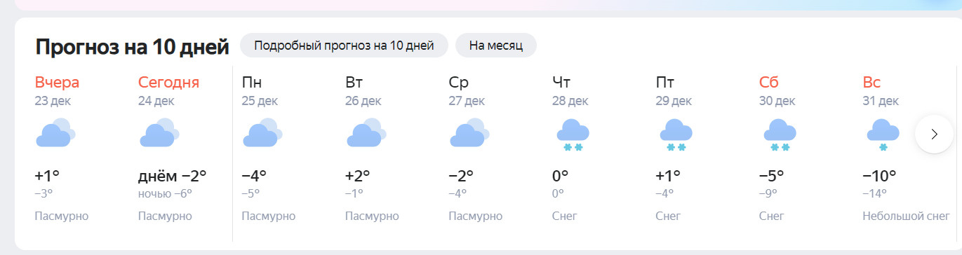 До +2 градусов: какой будет последняя неделя 2023 года — изучаем погодные сервисы
