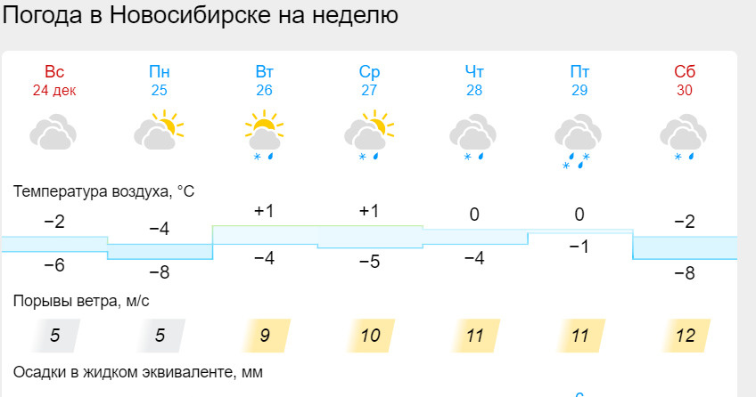 В Новосибирске в последнюю неделю 2023 года сохранится теплая погода. По данным некоторых погодных сервисов, температура может подняться до
