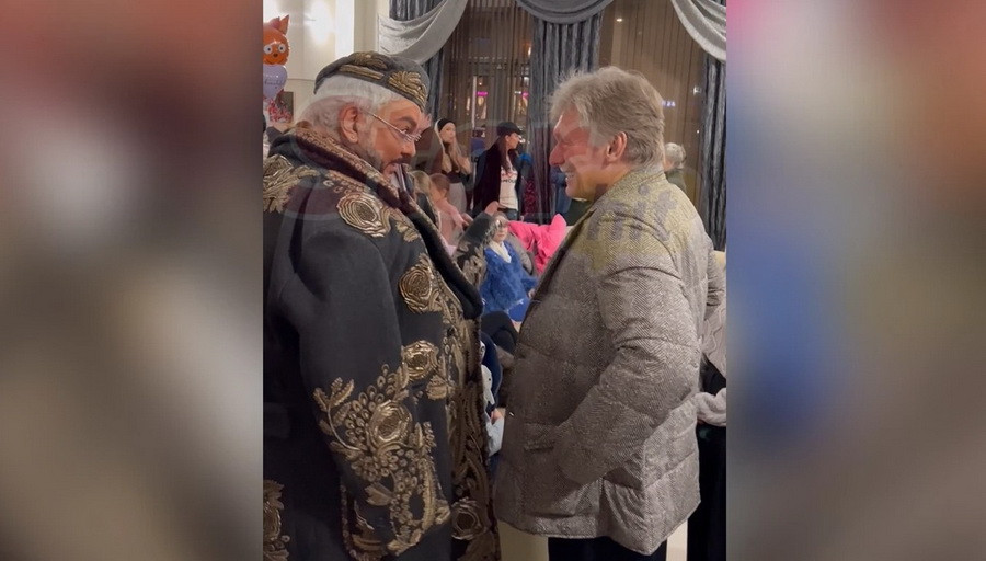 Издание Starhit.ru распространило видео, на котором Киркоров и Дмитрий Песков встретились за кулисами ледового шоу Татьяны Навки «Вечера на хуторе».