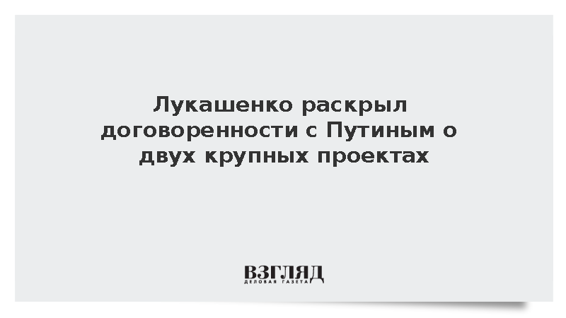 Лукашенко раскрыл договоренности с Путиным о двух крупных проектах
