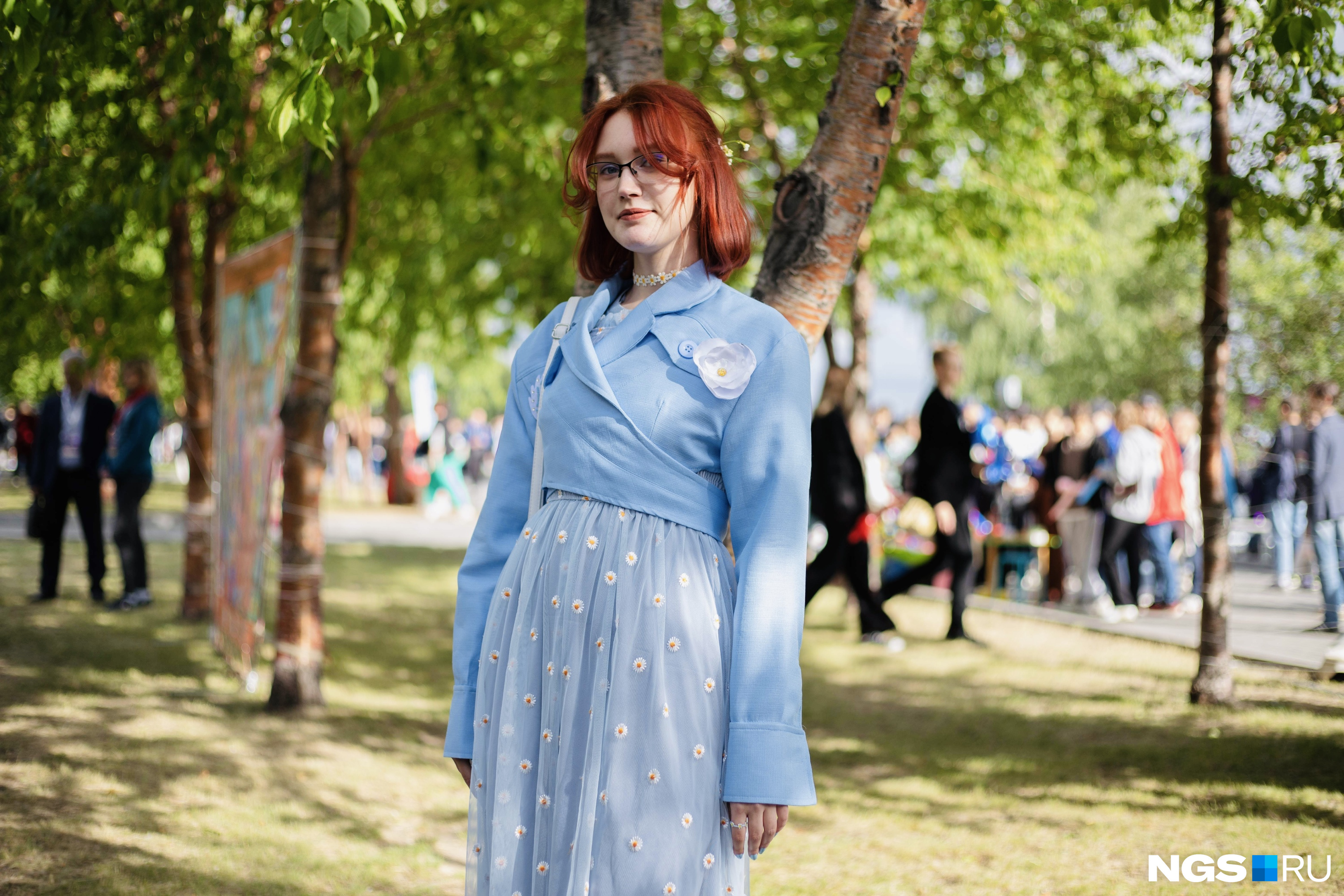 — Надела самое приличное, что нашла в шкафу. На вручение аттестата будет другое платье, я еще не выбрала. Хочу что-то в фиолетовых или голубых тонах, нравятся природные цветочные оттенки. Мне немного грустно сегодня, но счастье и радость я тоже чувствую — классное мероприятие. Немного волнуюсь о будущем, хочу поступить в НГУ на химический факультет, — рассказала Валерия.