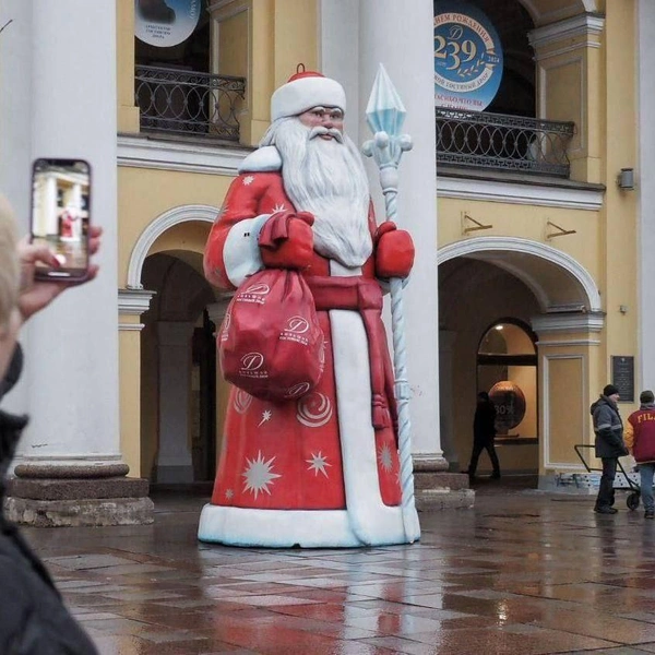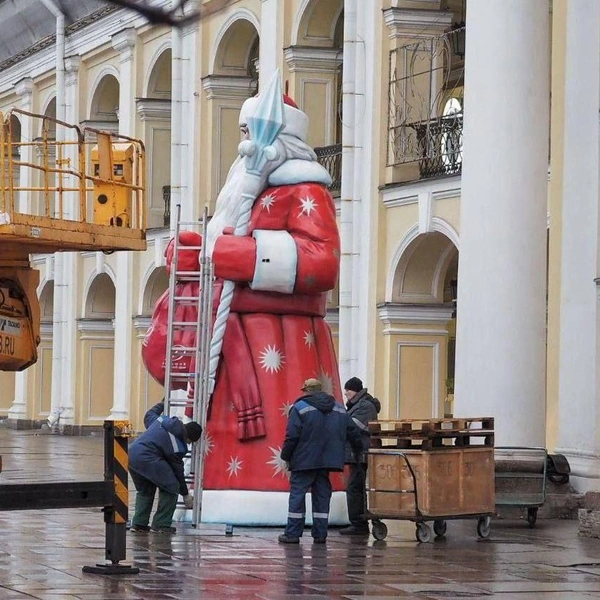 На Невском проспекте у Гостиного двора уже установили огромного Деда Мороза.