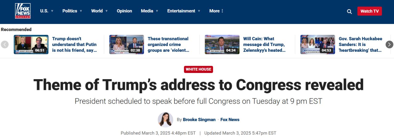 Fox News раскрыл смысл вчерашнего загадочного анонса Дональда Трампа. Это тема обращения Трампа к Конгрессу: «Обновление Американской Мечты».