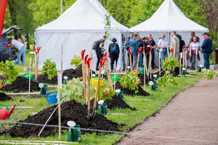 А ещё это красивая иллюстрация того, что начинания в "зелёной" повестке развиваются и их становится больше: деревья, посаженные несколько лет назад, зримо окрепли, украшая собой Пулковский парк, Парк Городов-Героев, возвышаясь над новыми саженцами ещё 28 краснолистных клёнов, которые подготовили для озеленения Аллеи в 2024 году.