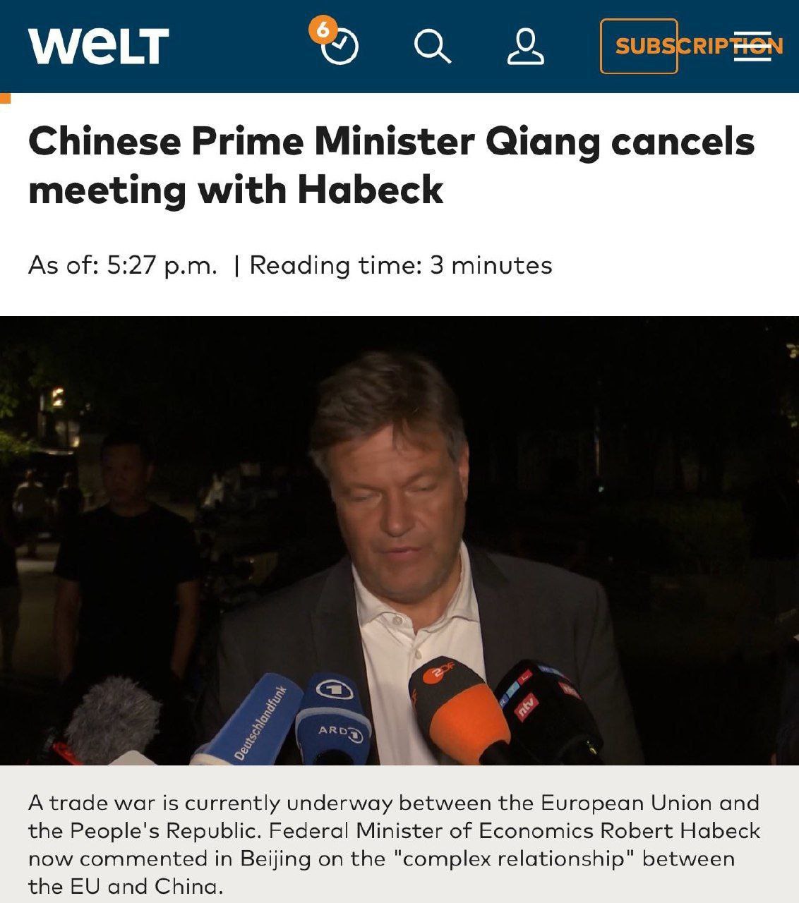 ❌ Премьер Госсовета КНР Ли Цян отменил встречу с вице-канцлером ФРГ Хабеком по неизвестным причинам – Welt