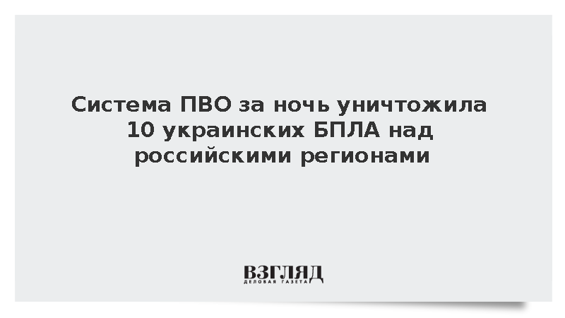 В Telegram-канале ведомства указано, что в ночь на 22 апреля дежурные средства ПВО уничтожили десять украинских беспилотников самолетного типа над несколькими регионами страны.