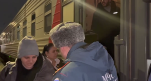 На видео, которое приложено к публикации, беженцам, в том числе женщинам, помогают выйти из поезда, спустить по ступенькам чемоданы и тюки с поклажей. У поезда беженцев встречает председатель правительства Дагестана Абдулмуслим Абдулмуслимов. Таке показаны кадры, как беженцы садятся в автобус.