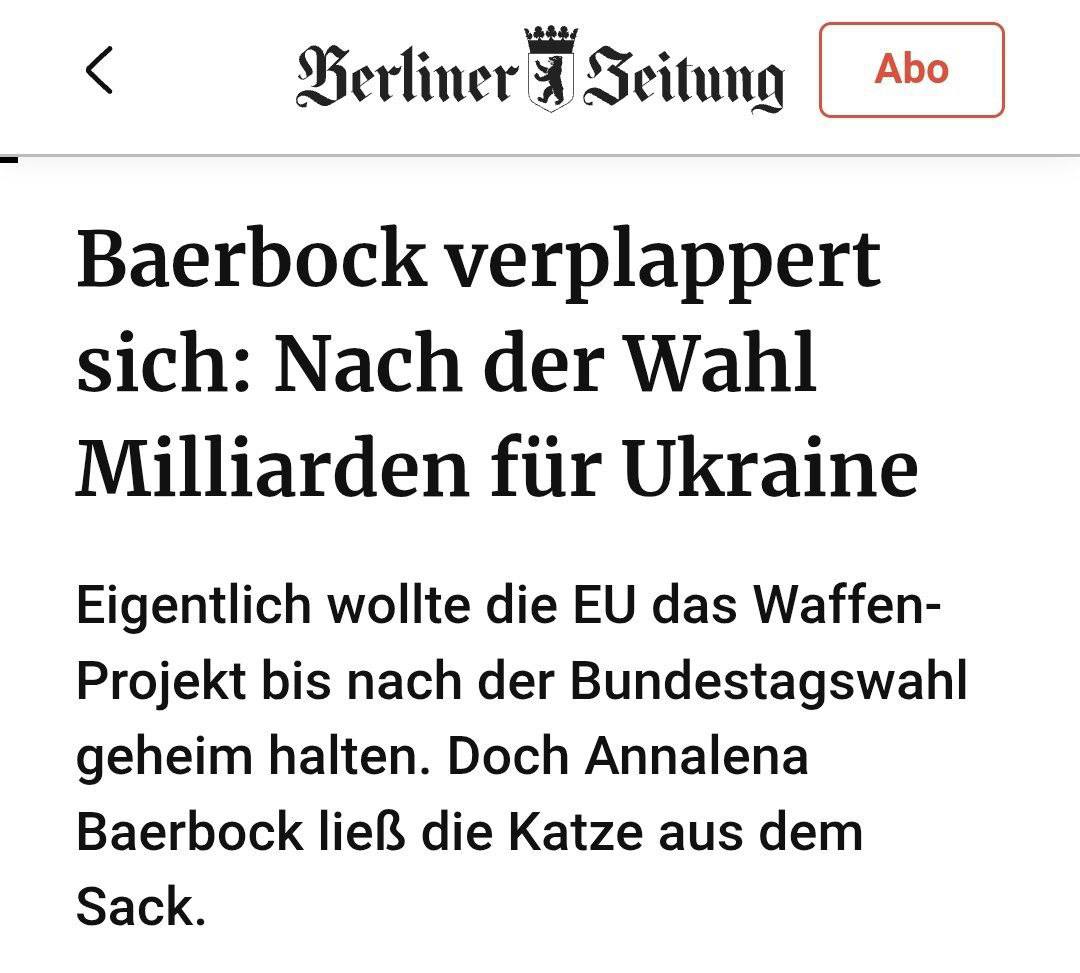 Министр иностранных дел Германии Анналена Бербок намекнула, что правительство выделит на Украину 700 млрд евро: «Мы запустим крупный пакет, который никогда ранее не предлагался», — сказала Бербок в интервью Bloomberg в кулуарах мюнхенской встречи.