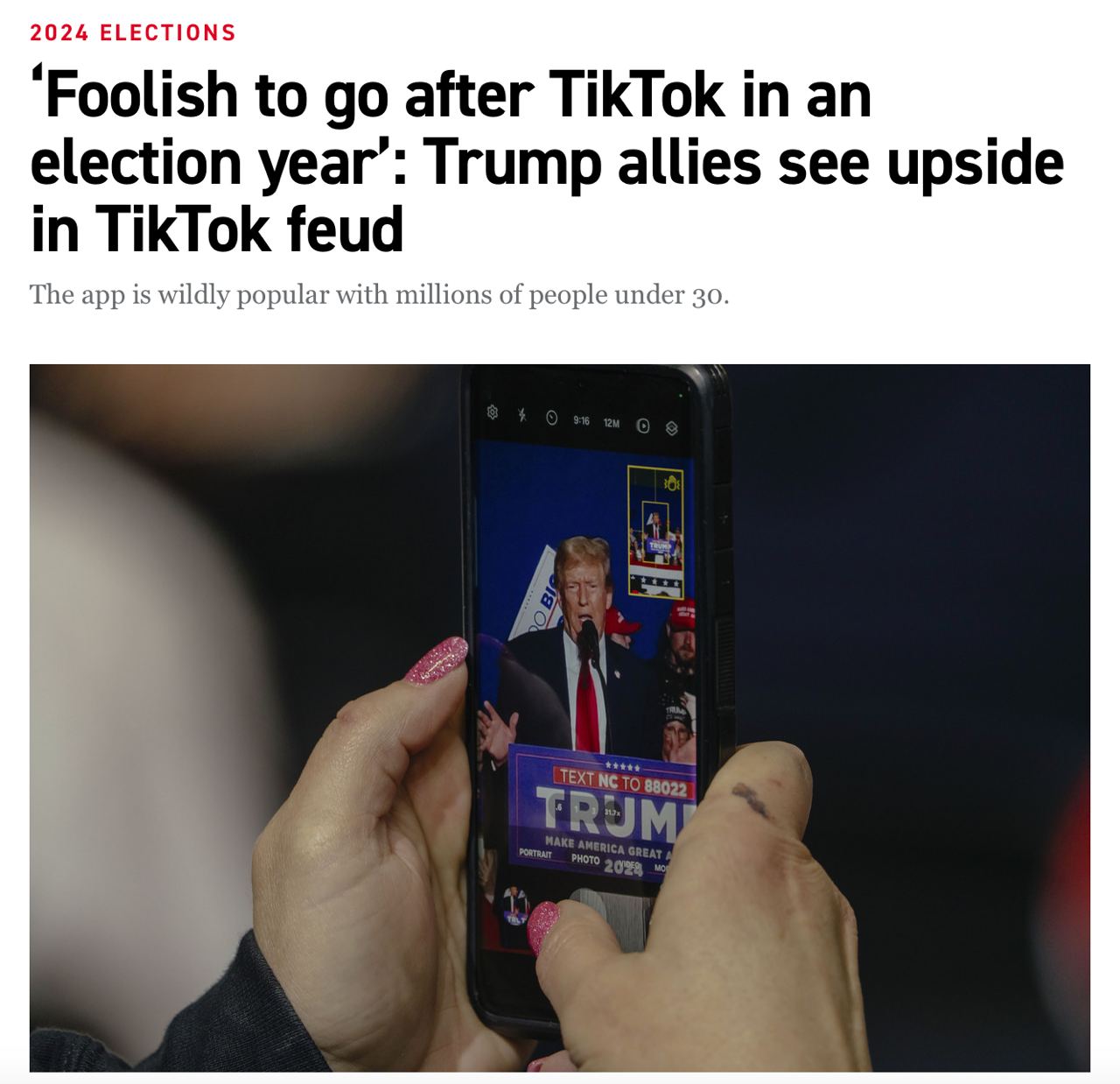 Ситуация вокруг TikTok открыла окно возможностей для Трампа. Он выступил против блокировки TikTok - и представляет себя поборником свободы слова. Впервые в современной истории больше половины молодых американцев поддерживают республиканцев. И баталии вокруг TikTok ускорят полураспад шатающейся электоральной коалиции Демпартии.