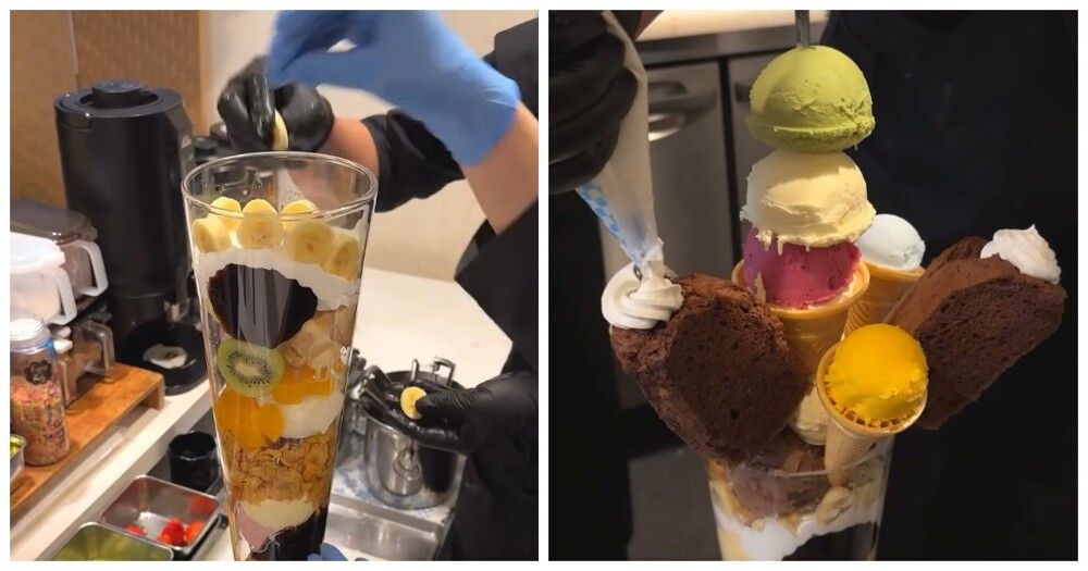 Гигантский десерт в японском кафе