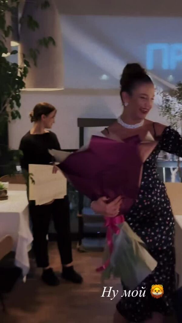 В таком виде певица пришла в ресторан, где ее ждал избранник. Ольга похвасталась, что возлюбленный подарил ей огромный букет роз, который она еле смогла удержать в руках. На видео, опубликованном Бузовой, мужчина вручает певице букет, затем же она слегка приобнимает его за плечо.