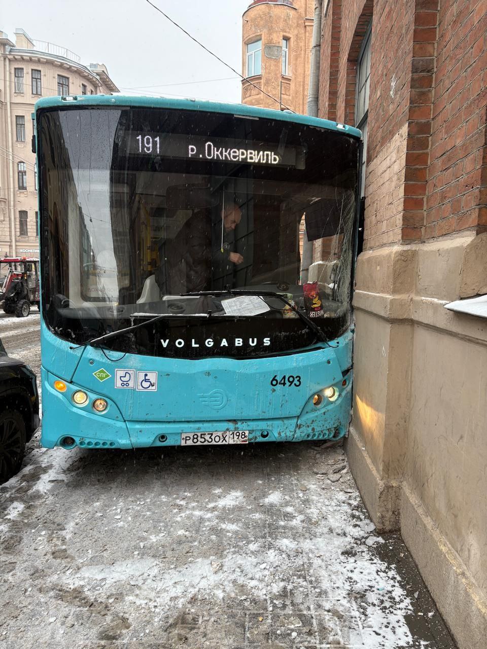 «Лазурный» и снегоуборочная машина не смогли разъехаться на Петроградке — автобус врезался в дом
