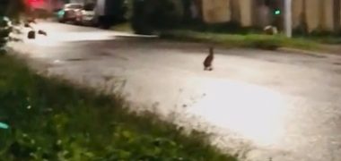 В темное время суток улицы областного центра, как оказалось, патрулирует не только полиция, но и настоящий заяц приличных таких размеров….