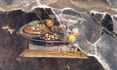 Во время археологических раскопок в древних Помпеях была сделана интересная находка — фреска, изображающая серебряный поднос с едой и вином, издание arkeonews.net.