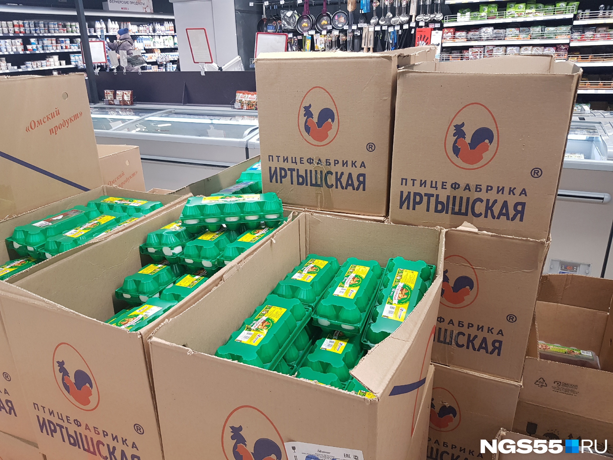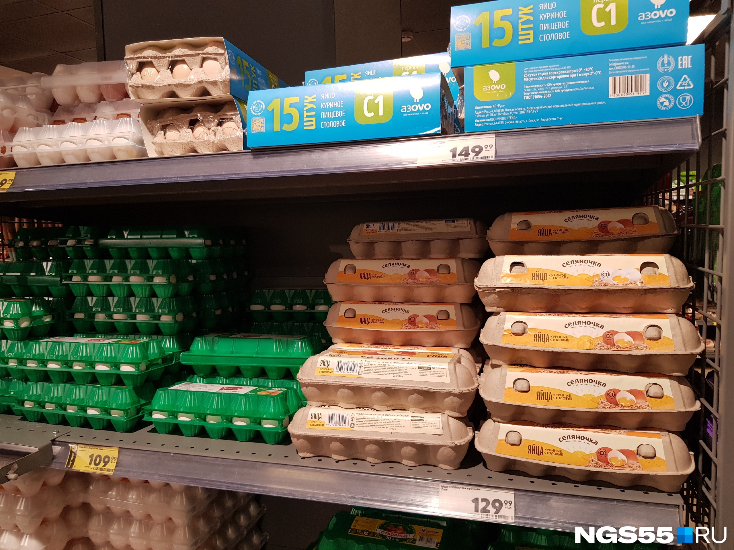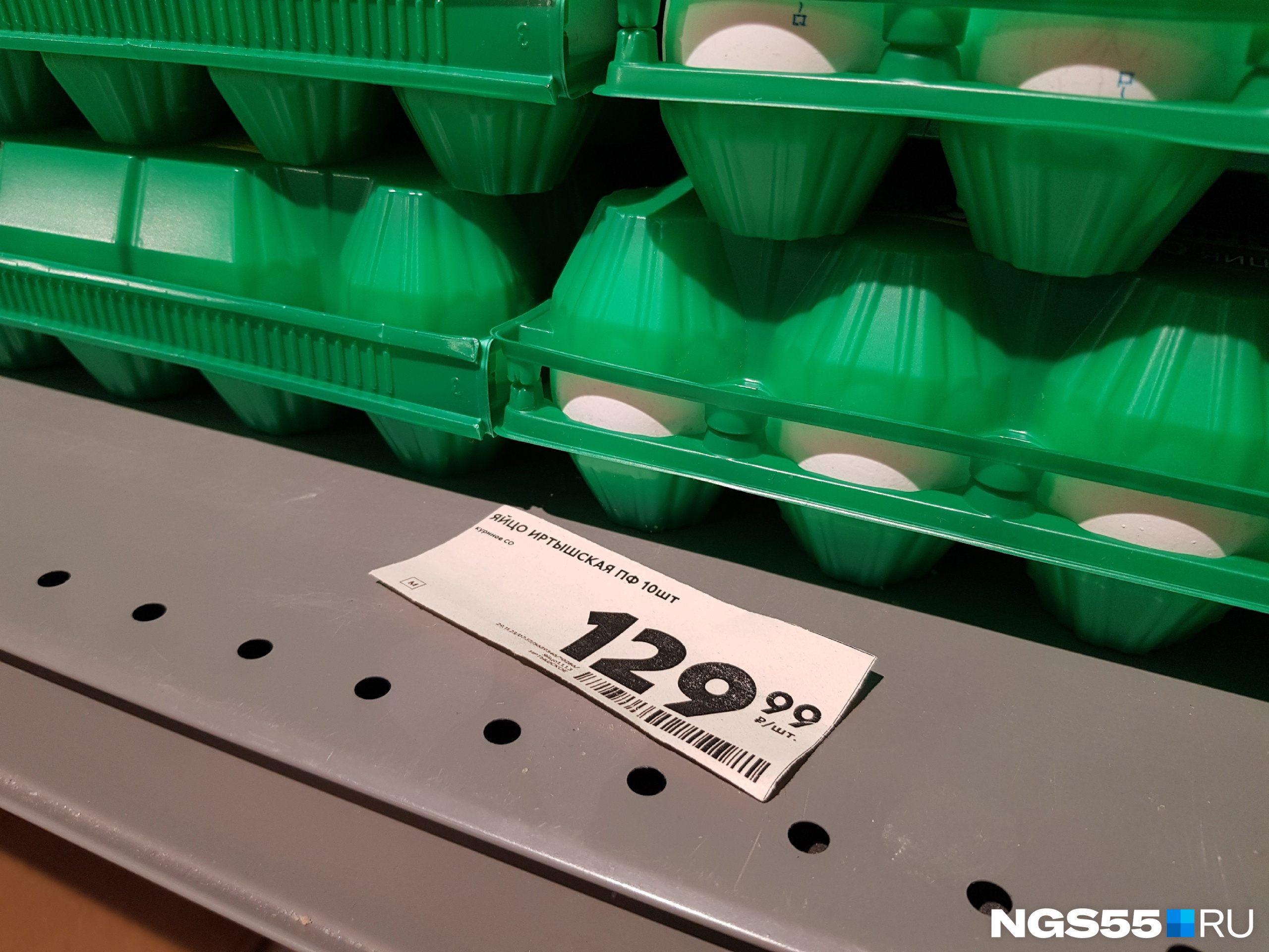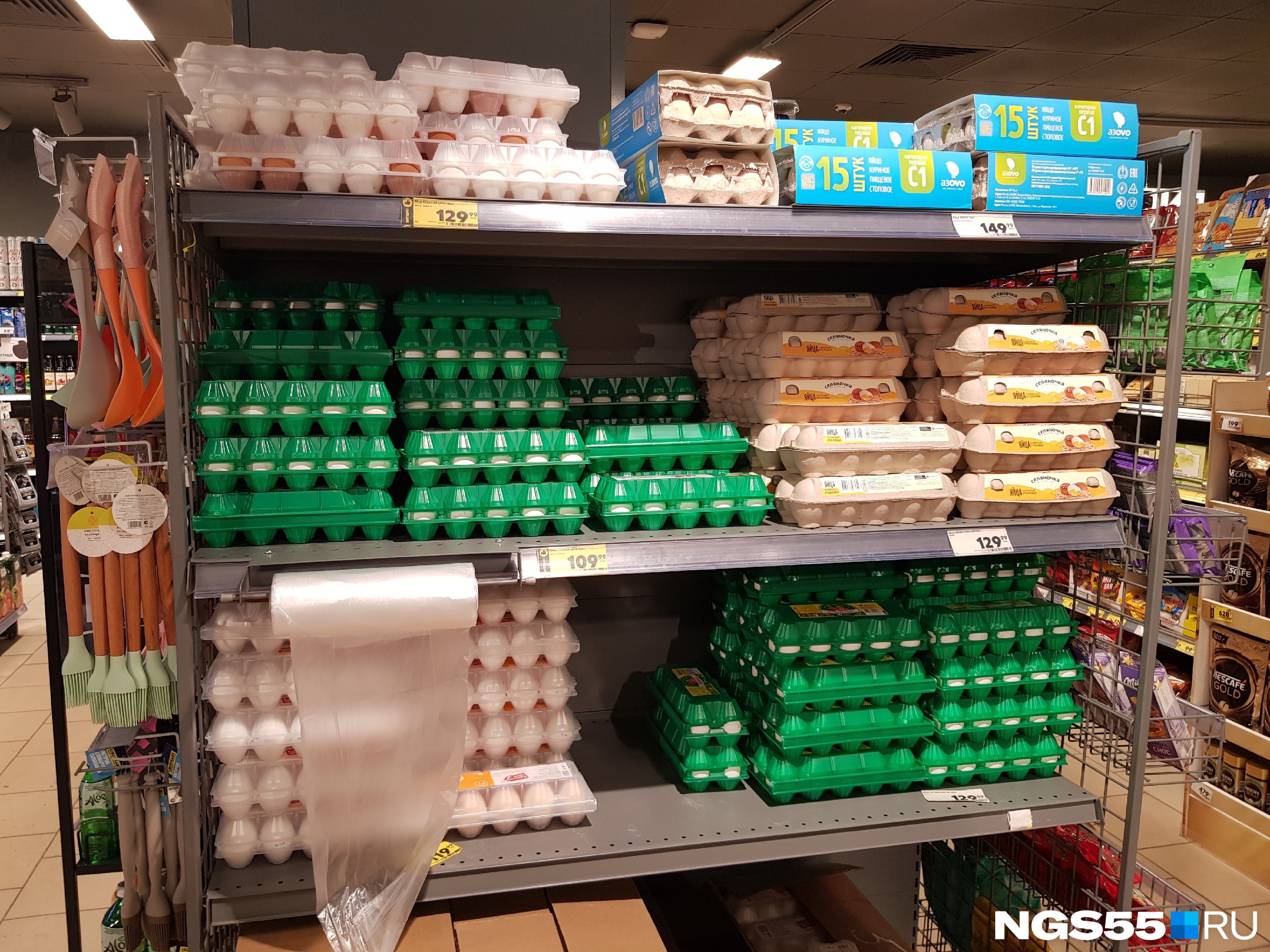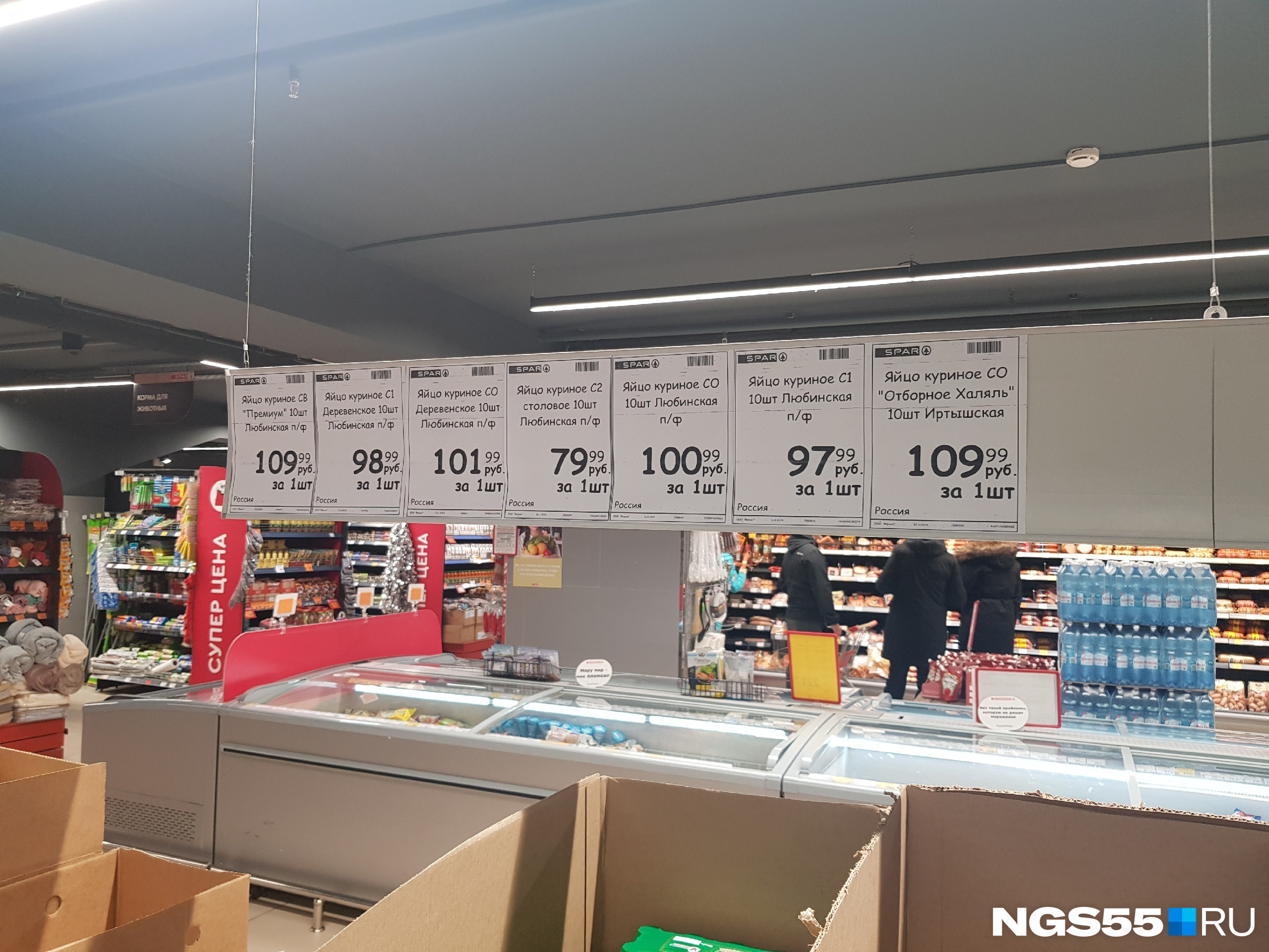 Например, 30 ноября в «Пятерочке» десяток отборных яиц от Иртышской птицефабрики стоил 129,99 рубля, C1 марки «Красная цена» — 119,99 рубля, а С2 той же марки — 109,99 рубля. В «Магните» на Магистральной полки были практически пусты: на яйцах «Простое яйцо» и «Моя цена» ценников не было. В SPAR десяток отборных яиц от Иртышской птицефабрики стоил 109,99 рубля. Широко в магазине представлены яйца Любинской птицефабрики: десяток отборных оценили в 100,99 рубля, C1 — 97,99 рубля, C2 — 79,99 рубля.