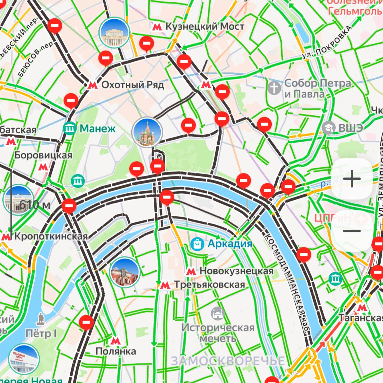 В некоторых районах банкоматы не работают, в магазинах принимают только наличку, заказать условные сырники на завтрак — нереально. Кроме того, закрыта часть заведений и магазинов, которая находится на пути следования техники.