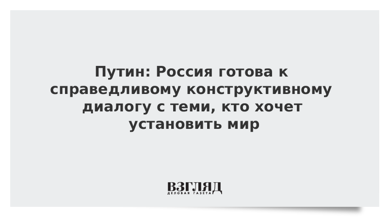 «Мы открыты к конструктивному диалогу со всеми, кто желает мира на принципах справедливости и учета законных интересов сторон», – цитирует Путина ТАСС.