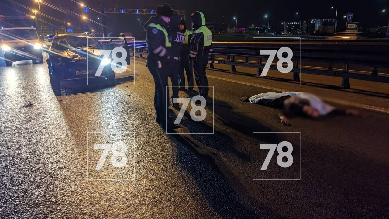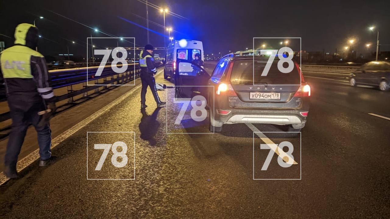 Как человек оказался на развязке, не уточняется. В данный момент ограничено движения по третьей и четвёртой полосе. Подробности выясняются.