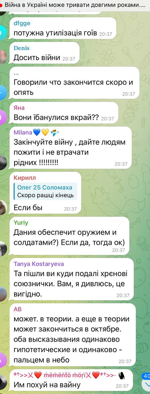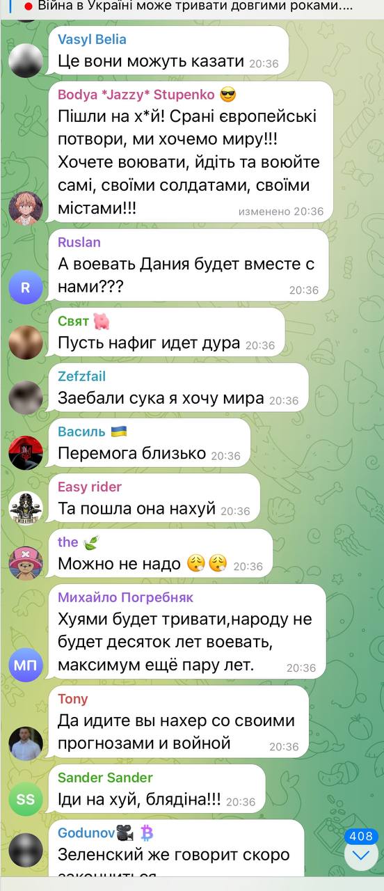 Пост премьер-министра Дании, что война на Украине может продлиться годами, и ЕС и США должны быть готовы к поддержке, и комменты хохлов под этим постом.