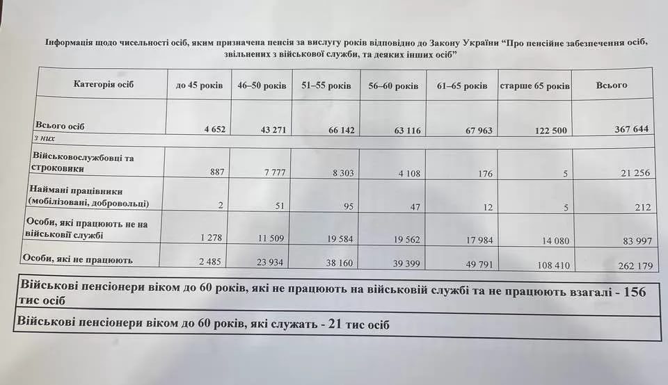 Она опубликовала соответствующую таблицу с информацией о численности лиц, которым назначена пенсия за выслугу лет в соответствии с Законом Украины "О пенсионном обеспечении лиц, уволенных с военной службы, и некоторых других лиц".