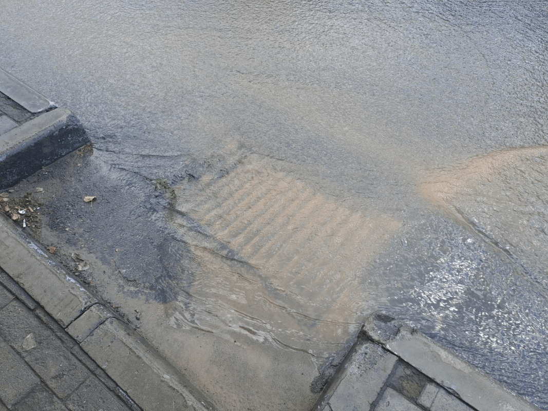 На записи видно, как «благоухающие» на всю округу стоки мощно бьют из люка, затапливая улицы.