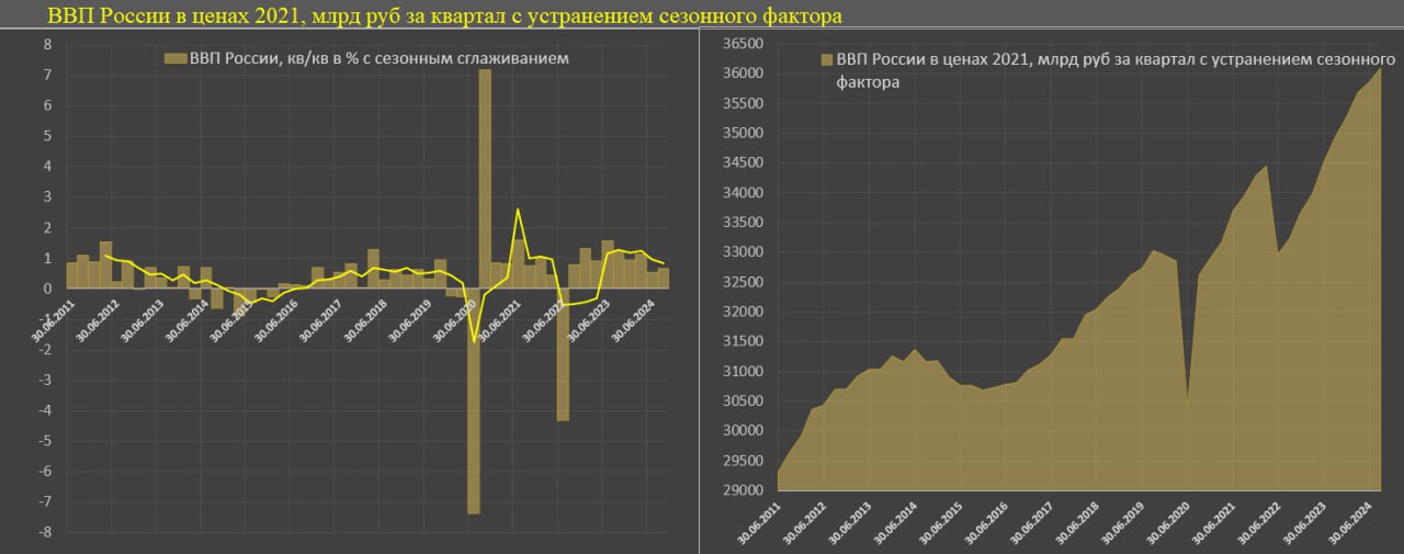 Предварительные оценки на основе оперативных индикаторов экономической активности давали рост ВВП близкий к нулю, но все же удалось насчитать почти 0.7% роста и это даже лучше 2кв24 (+0.53% кв/кв SA), но хуже 1кв24 (+1.14%).