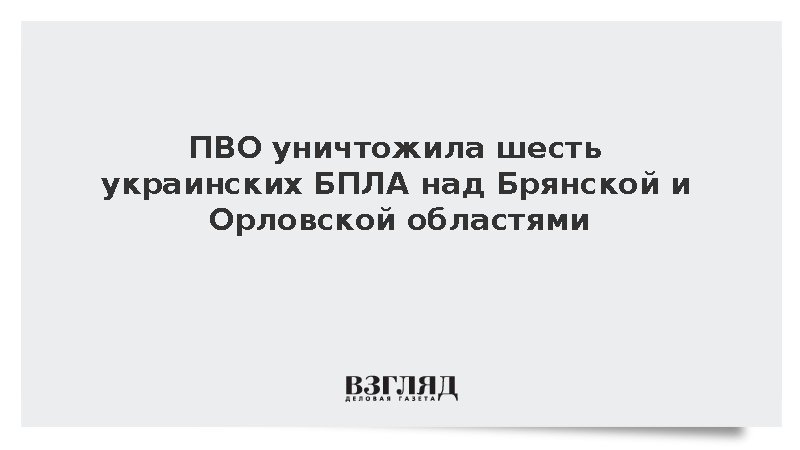 Дежурные средства российской ПВО перехватили и уничтожили четыре украинских беспилотника над Брянской областью и еще два над Орловской, сообщили в Минобороны РФ.