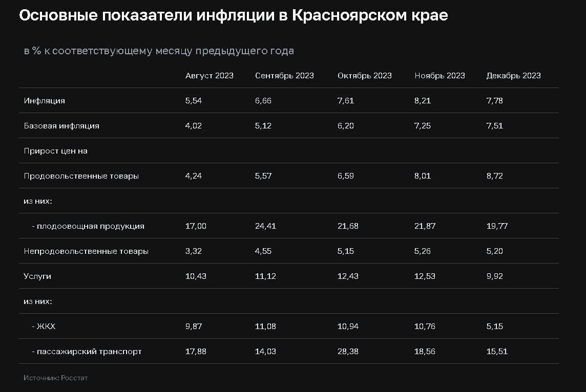 В красноярском отделении ЦБ РФ сообщили, что в декабре 2023 года по сравнению с ноябрем инфляция замедлилась и составила 7,78%.