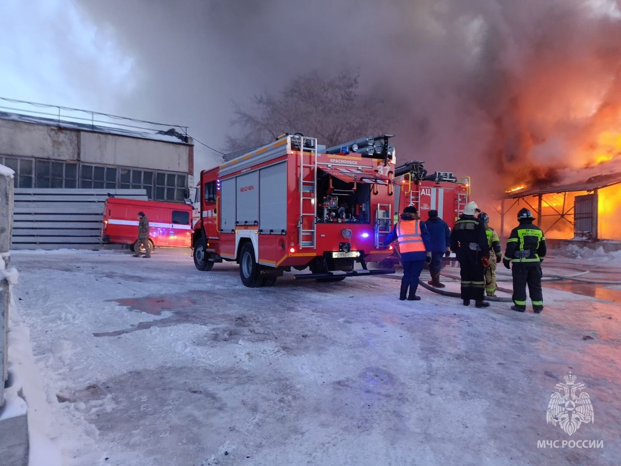 Сотрудники ГУ МЧС поделились кадрами с места сильного пожара на Петухова в Новосибирске. Утром, 23 февраля, загорелись склады на улице Петухова. Пожарные работают на месте и организовали оперативный штаб.
