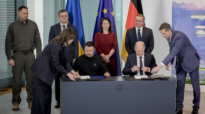 Документ подписан канцлером ФРГ Олафом Шольцем и Владимиром Зеленским, который в пятницу, 16 февраля, прибыл с визитом в Берлин.