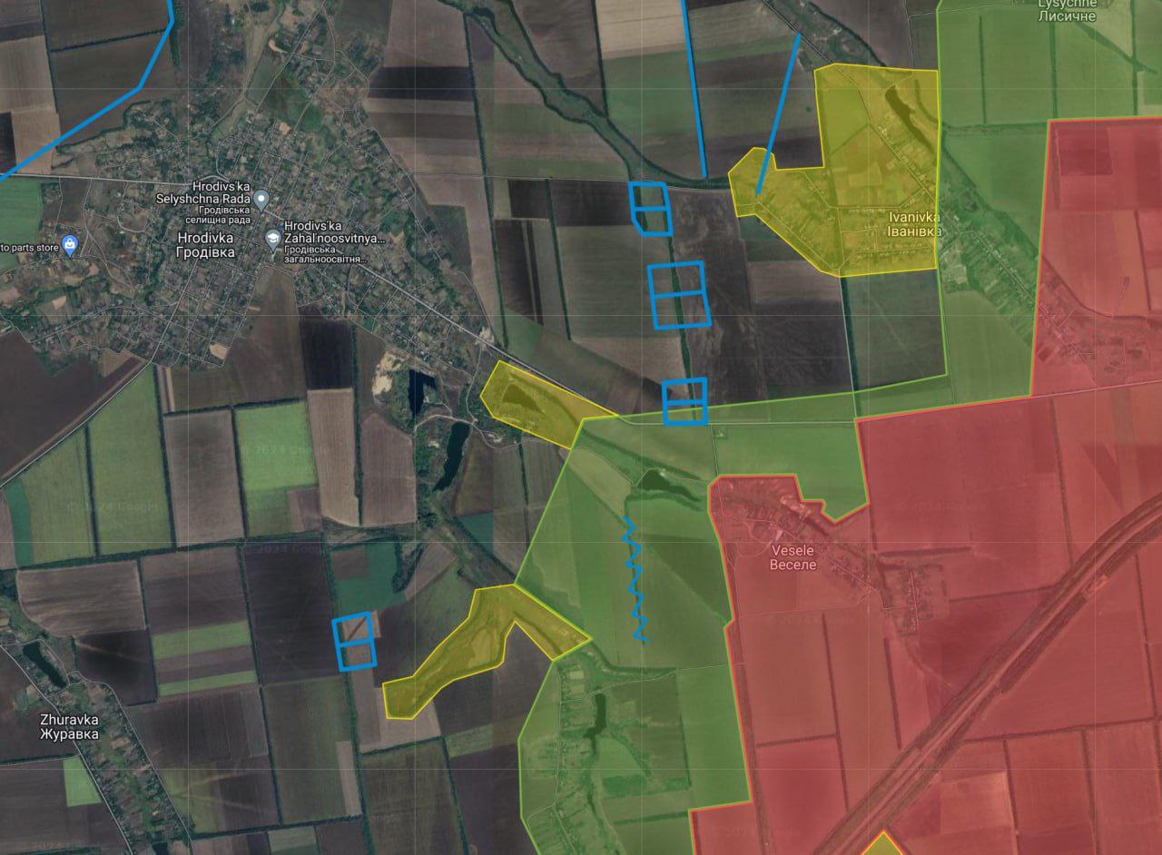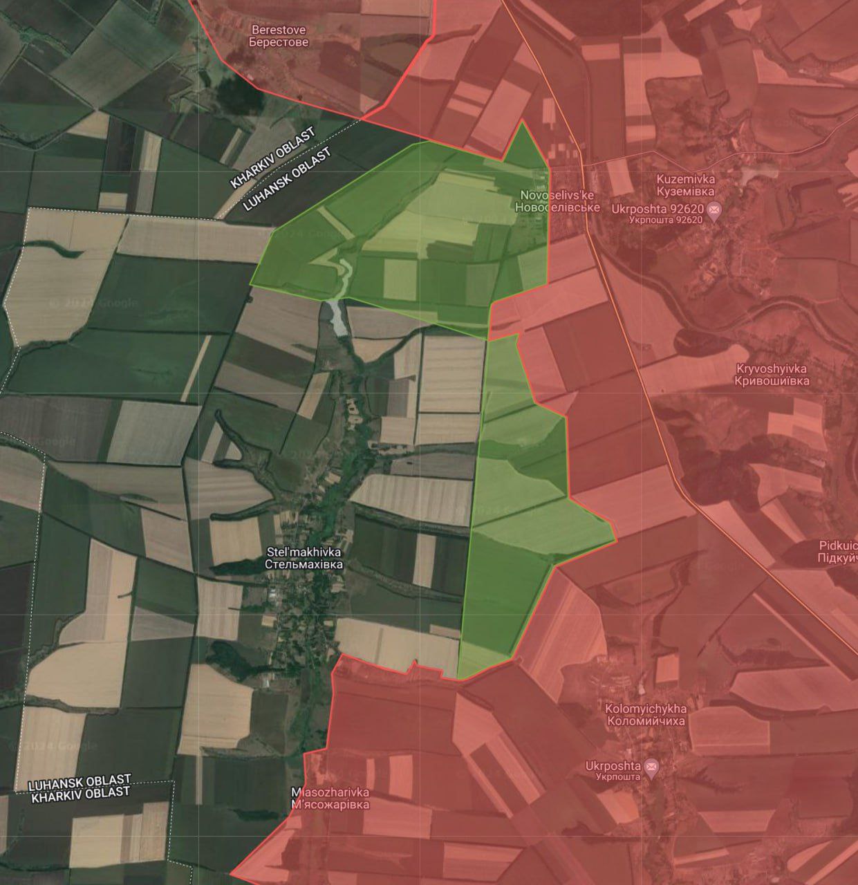 Международные ТГ-каналы сообщают о расширении зоны контроля Армией России в окрестностях Гродовки и увеличении зоны контроля в районе Песчанного в ДНР, а также сжимании клещей вокруг Стельмаховки — одном из последних населенных пунктов ЛНР под контролем ВСУ