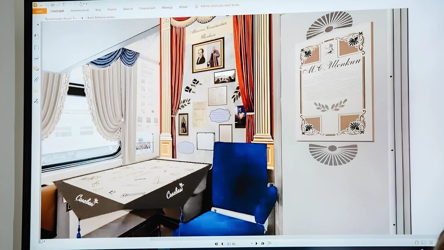 Известно, что в вагоне-музее предусмотрены аудиозоны с произведениями Георгия Свиридова и народными песнями в исполнении Надежды Плевицкой, а также мобильная библиотека для чтения в пути.