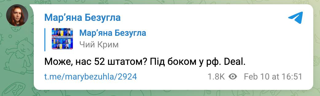 В Киеве озвучили свой план "незалежности". Видимо за это воевали, ради этого обрушили страну и ради этого устраивался Майдан. Нардеп Марьяна Безуглая предлагает сделать Украину «52-м» штатом США. И главное - под боком у РФ.