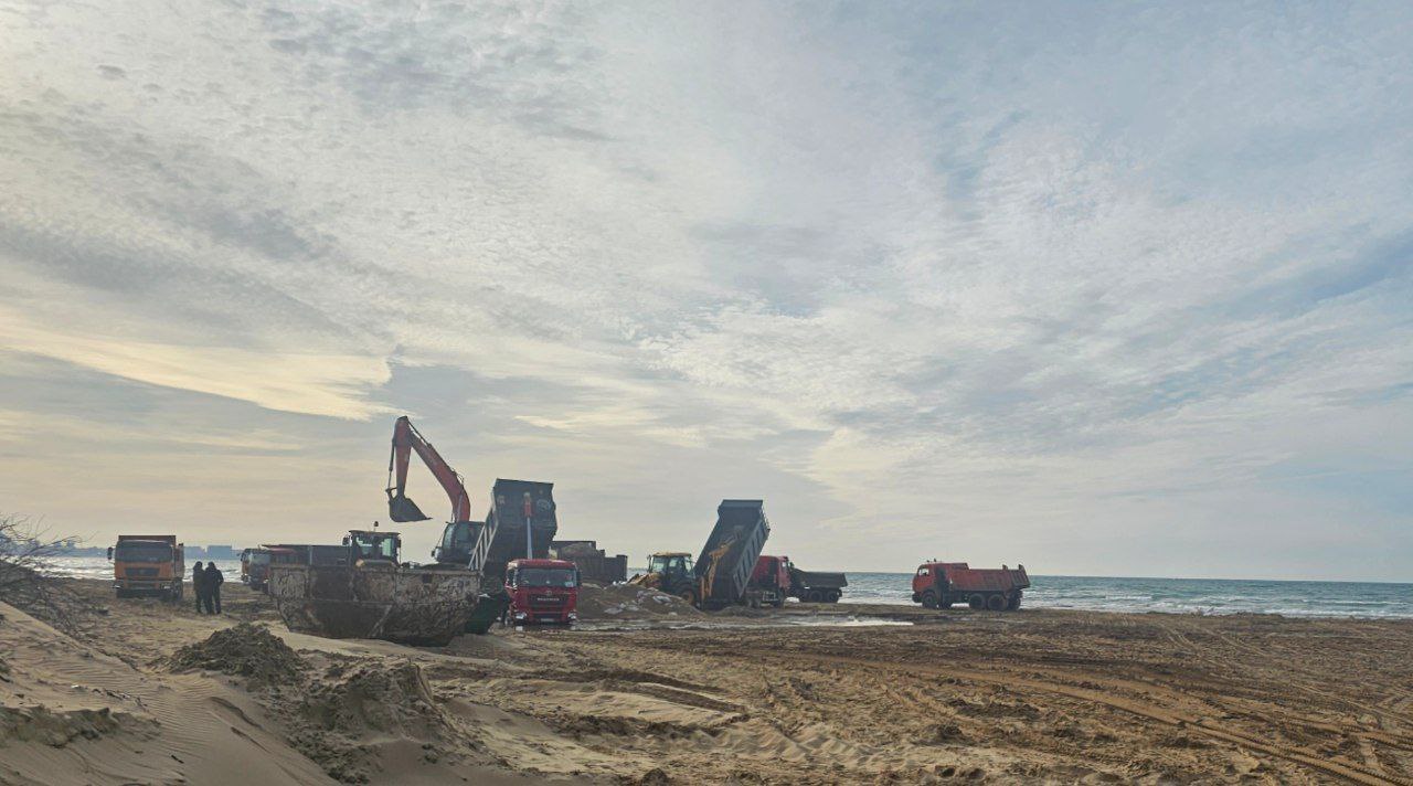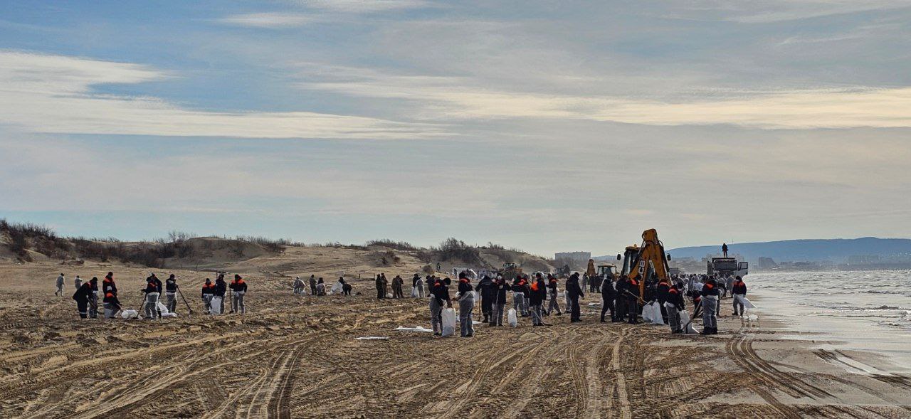 Побывал в Анапе ещё раз. Нужно признать, что вся эта громоздкая госмашина заработала. На пляжи нагнали рабочих в от разных предприятий и общественных организаций, много техники. Между работниками снуют журналисты федеральных телеканалов. Техника также ездит колоннами, но уже с понятное логикой: продвигаются вдоль береговой линии и вывозят горы мешков и загрязненного песка. Это видимо и есть тот самый миллиард рублей.